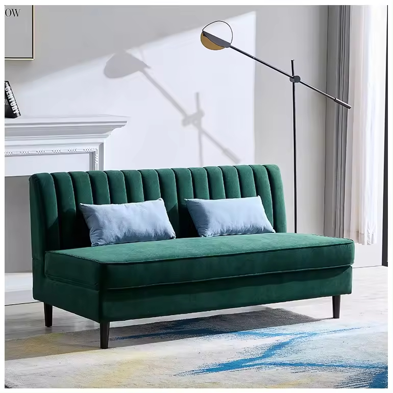 Modern Stylish Fabric Sofa Sleeper Couch with Velvet Wood Frame Soft Foldable Reclining Bed for Bedroom Living Room Furniture