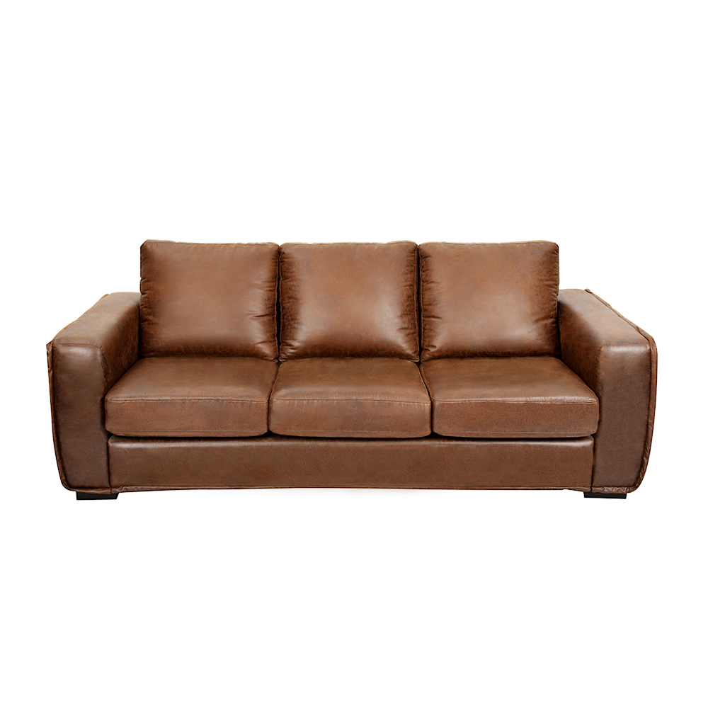 Sofà da salotto moderni di alta qualità, di lusso, in pelle sintetica marrone italiano, sezionale, divano con braccio quadrato a 3 posti